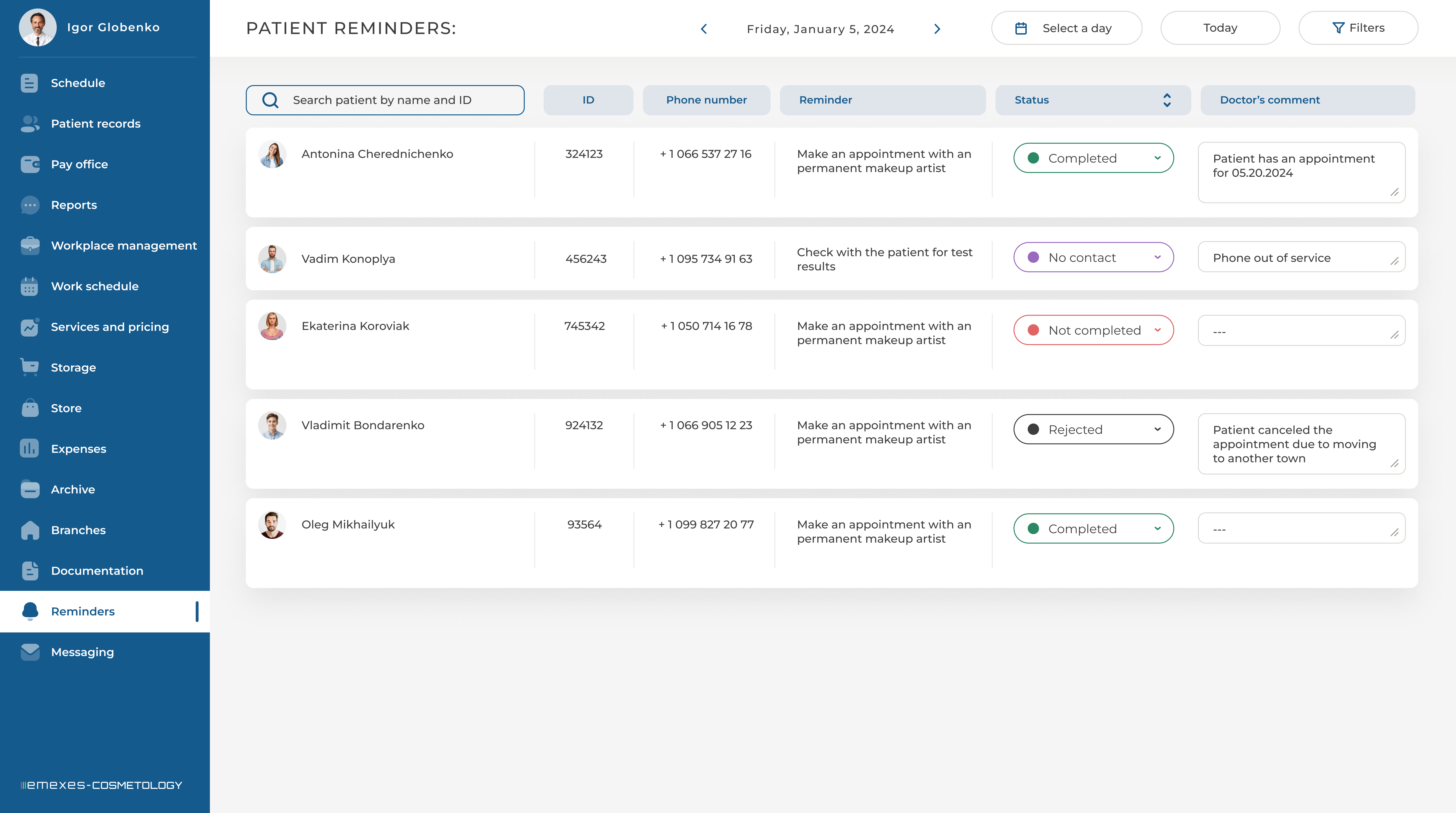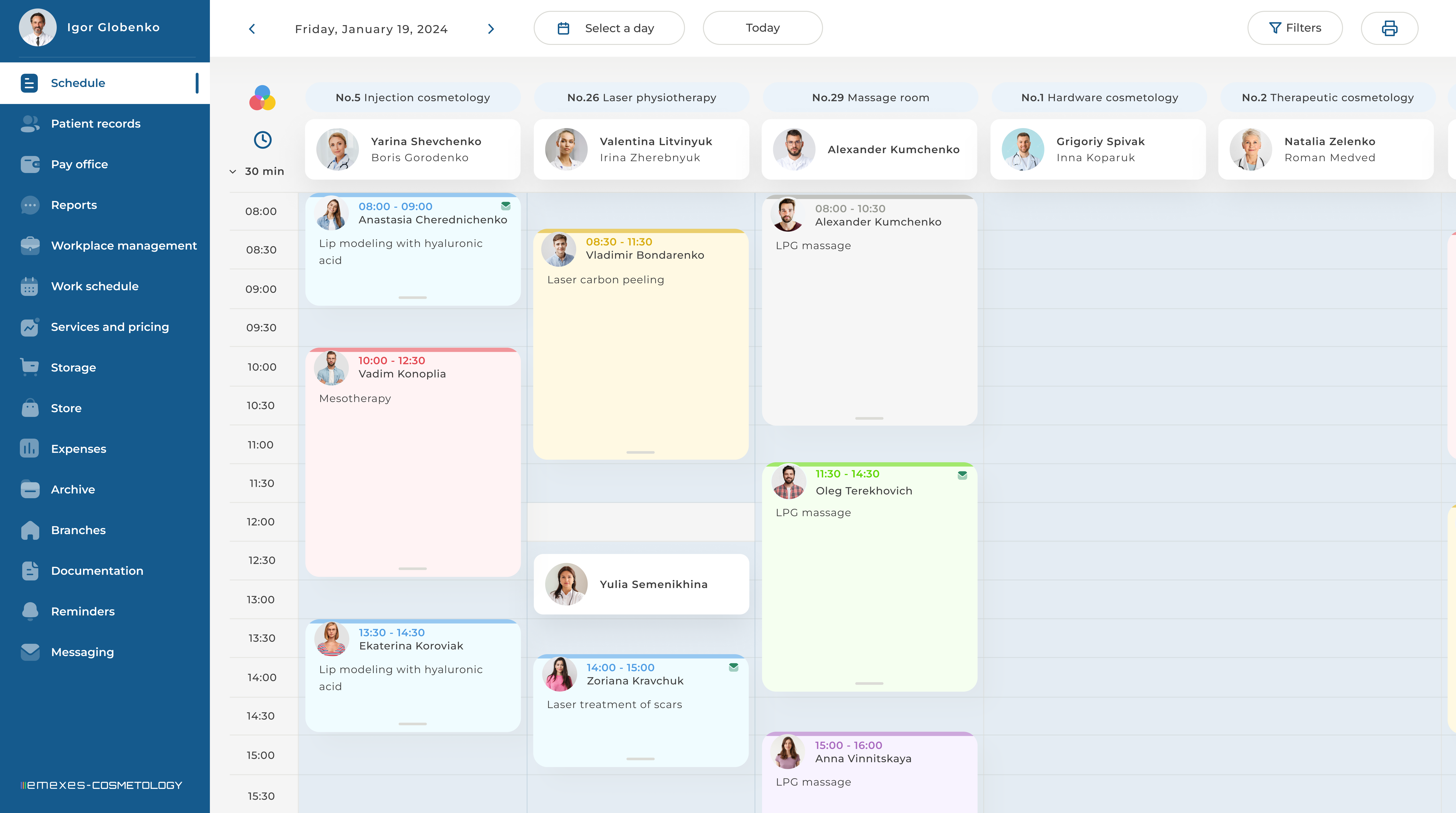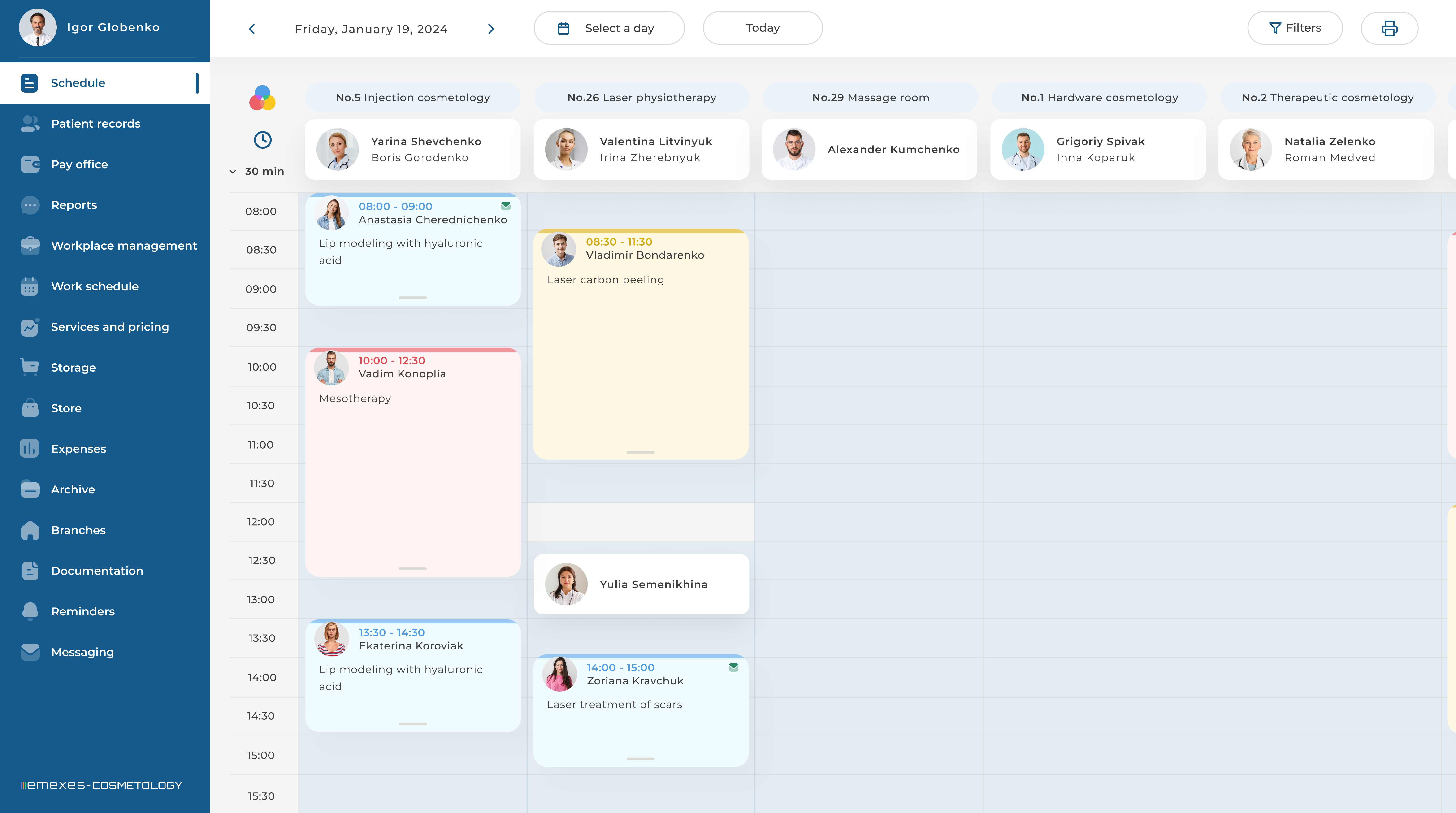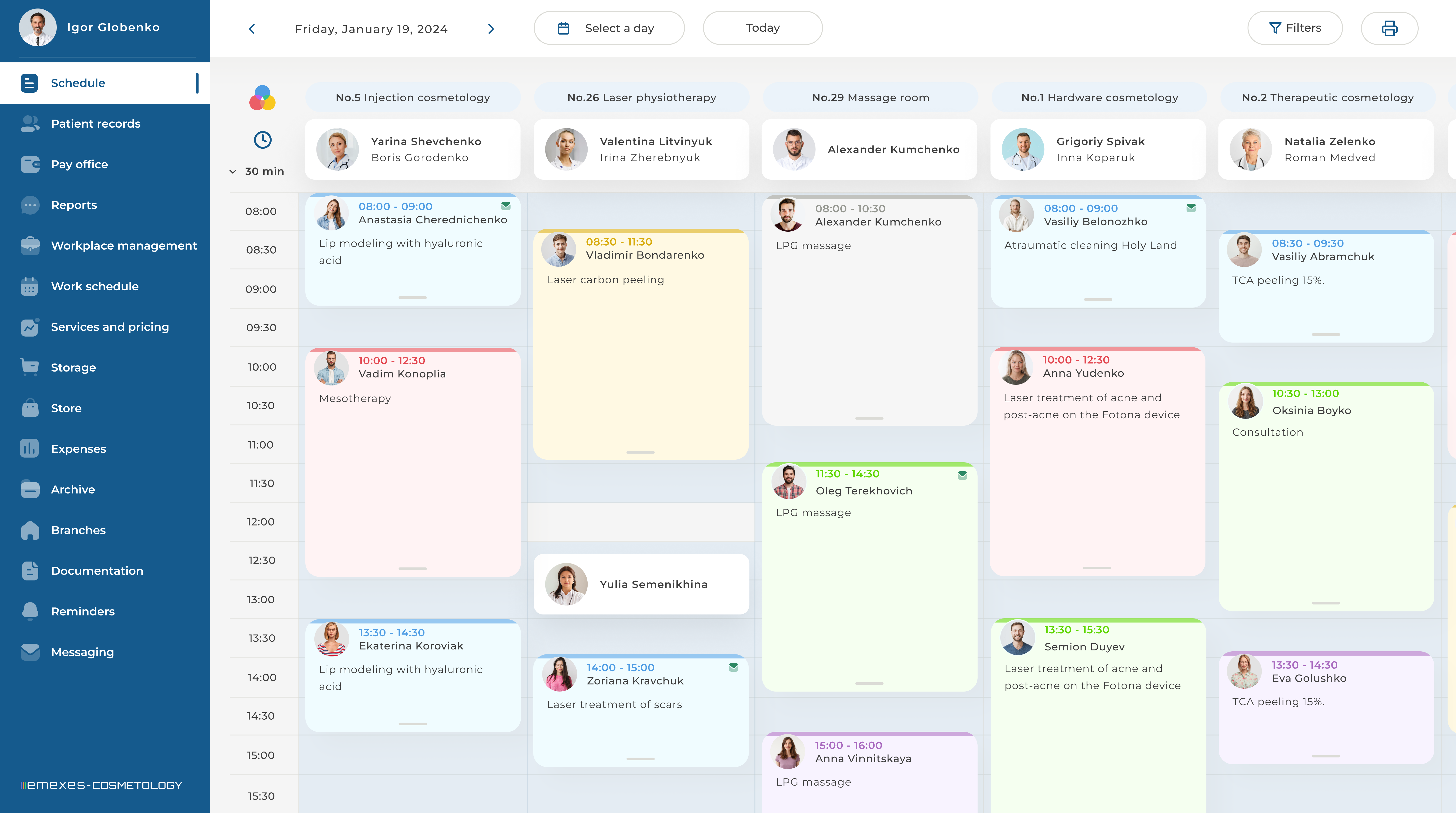 - Simple management of a cosmetology clinic network