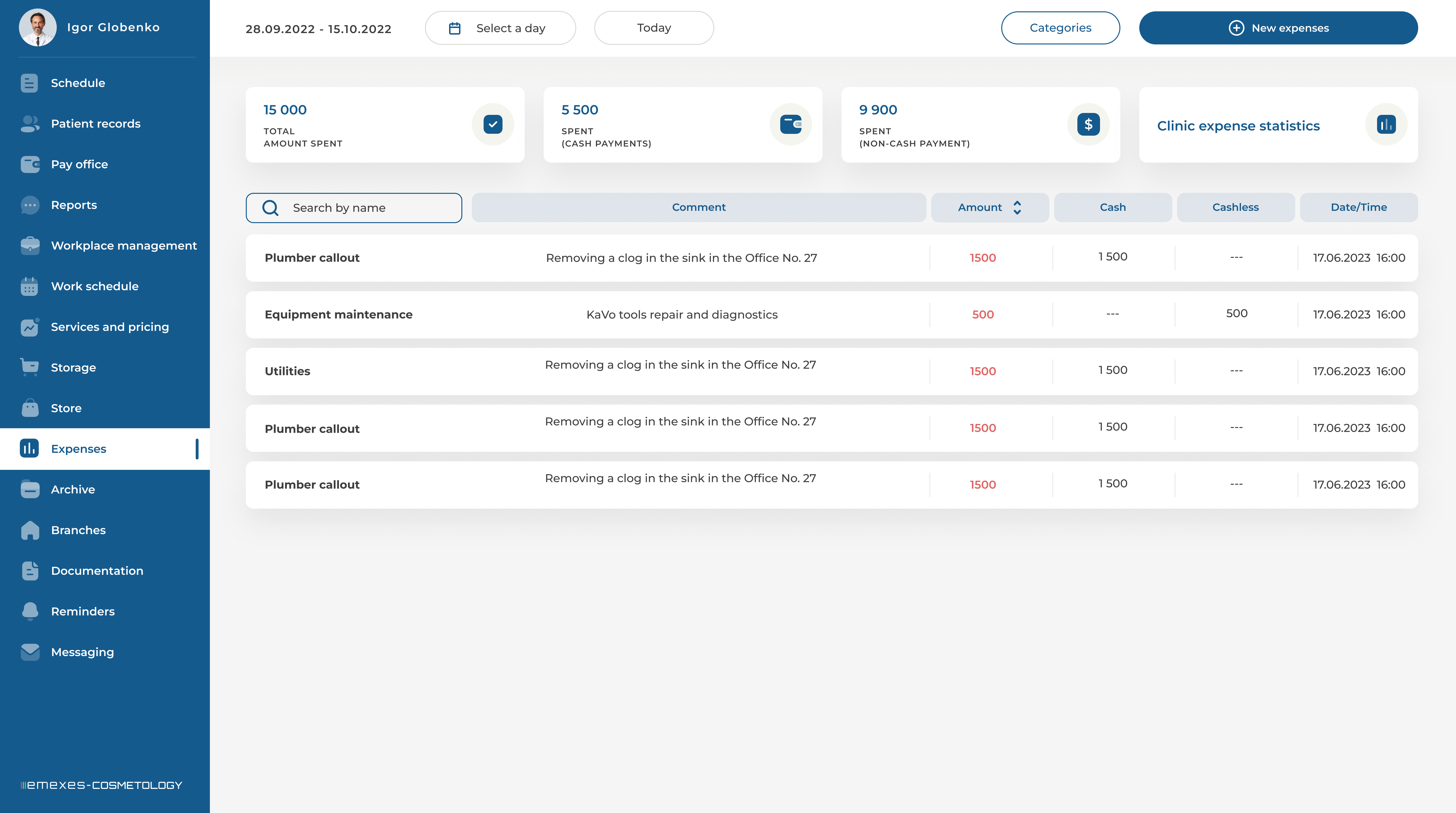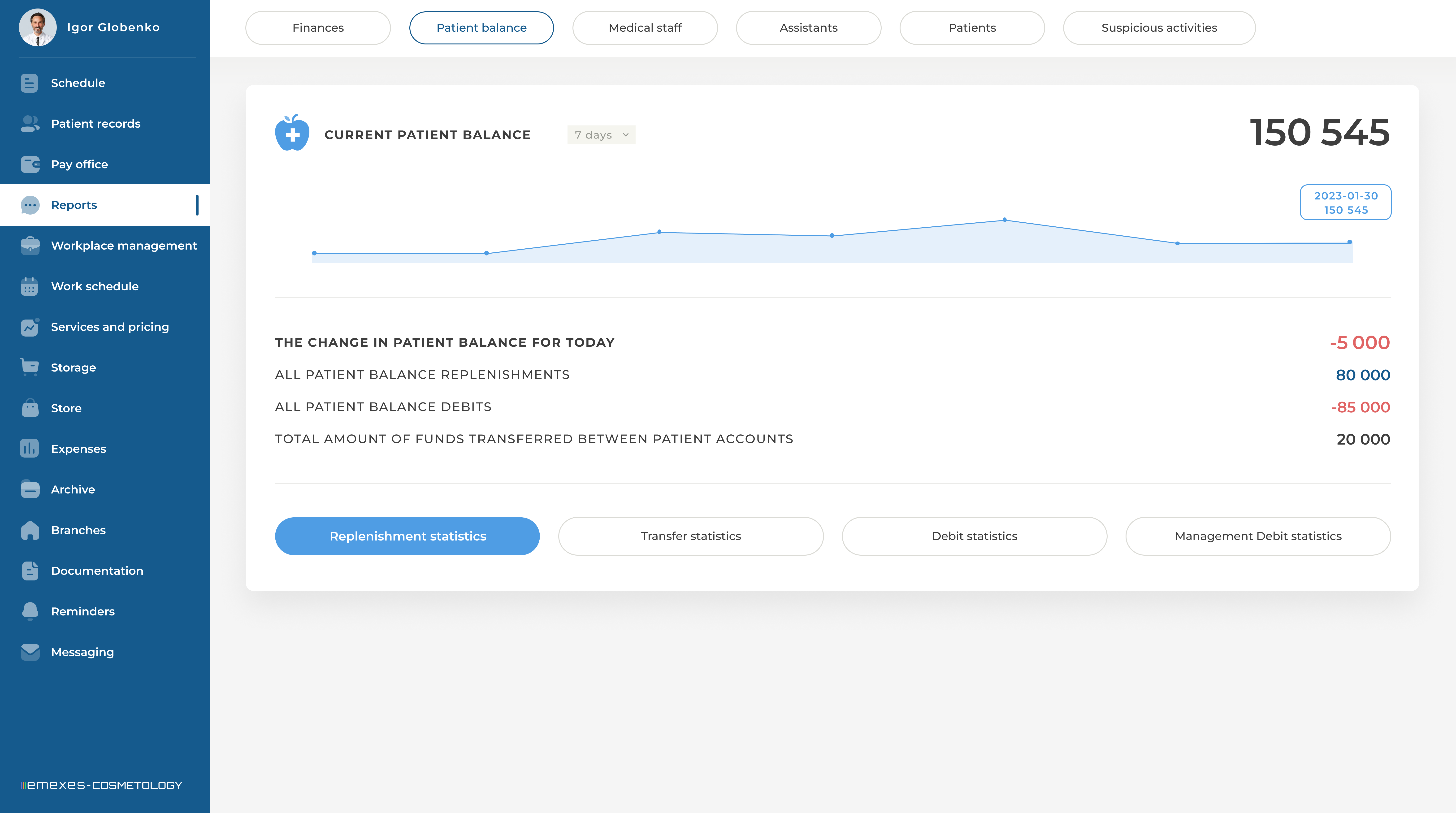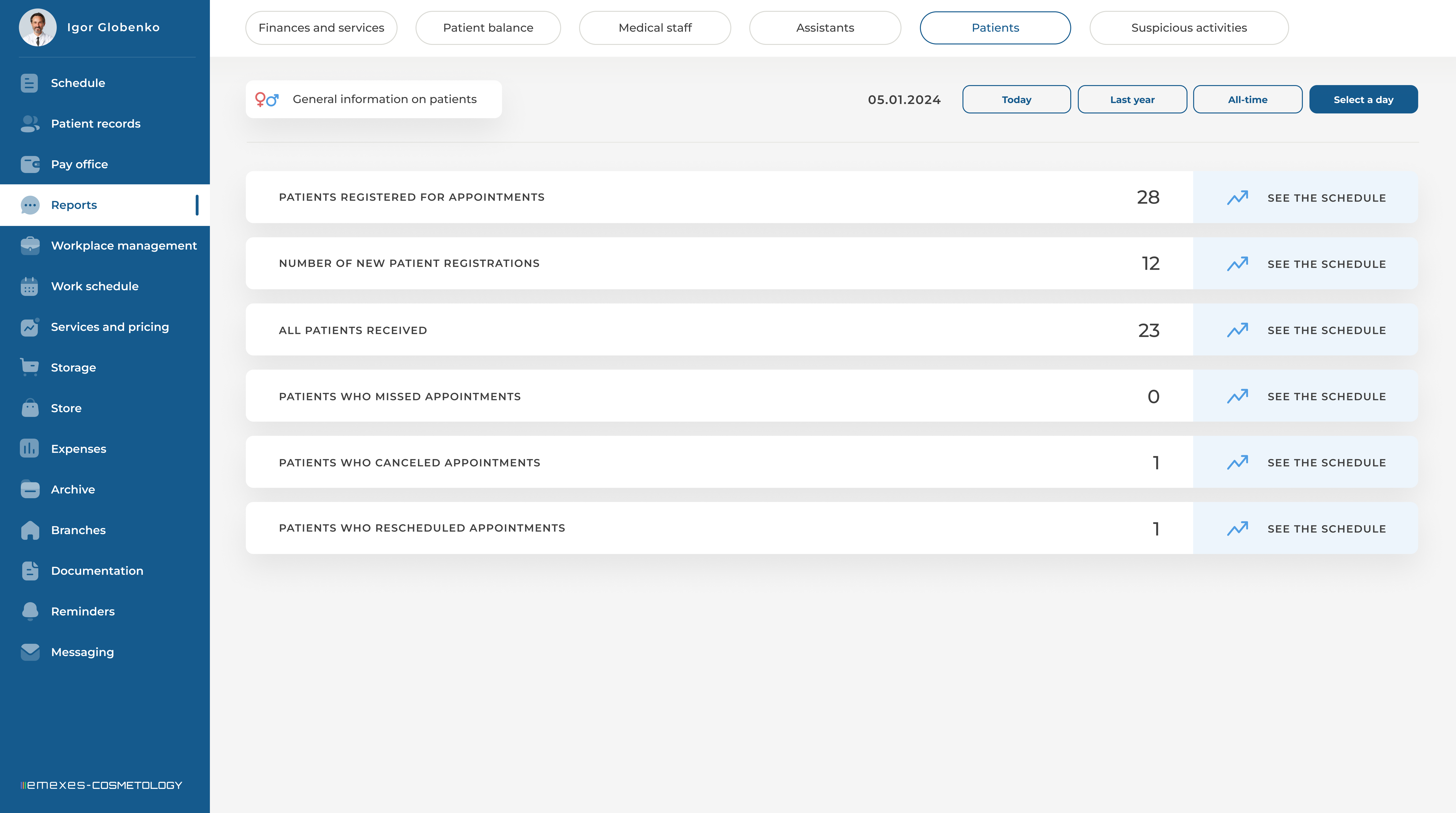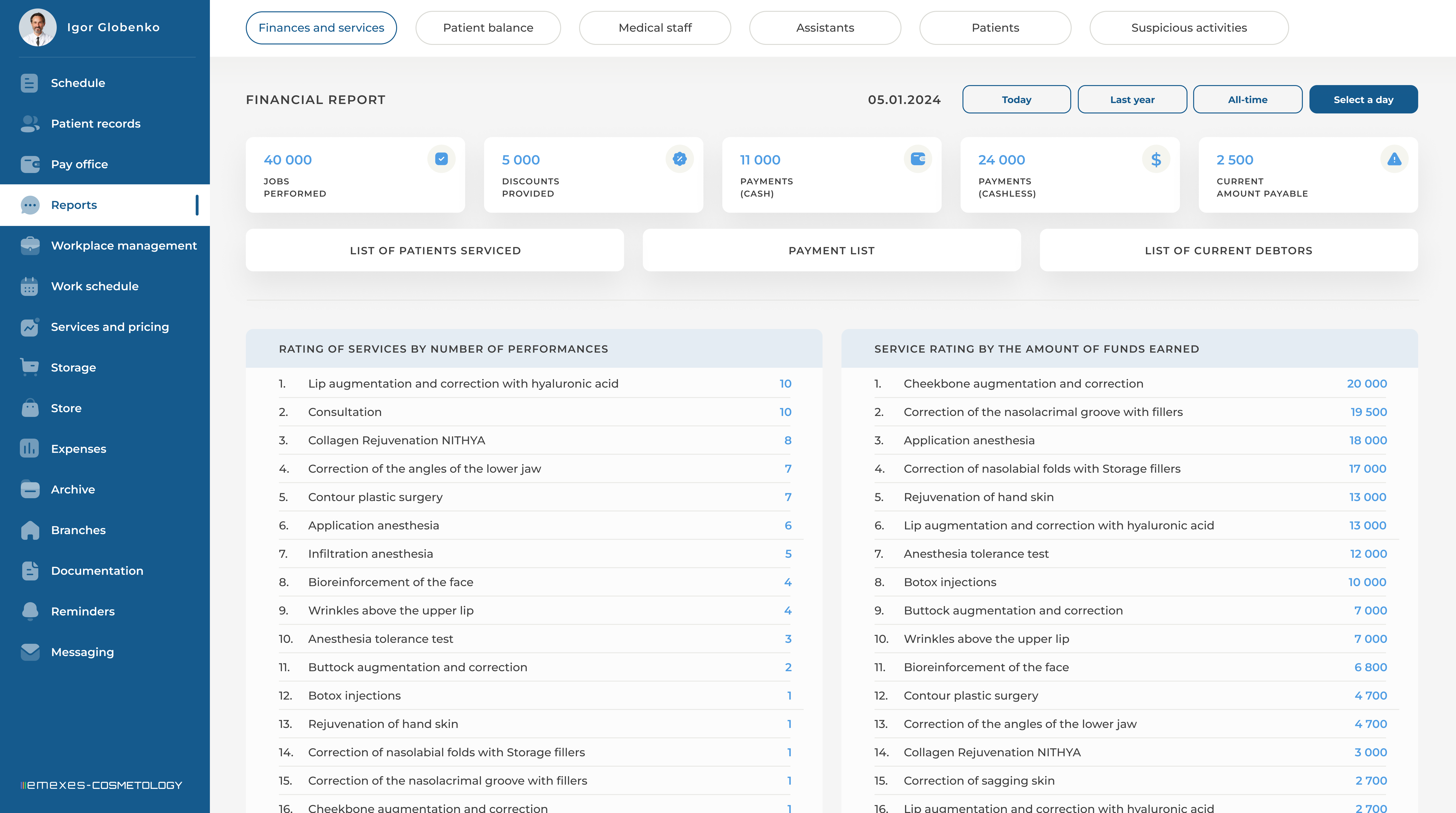 - Generation of detailed reports and statistics on the clinic's work