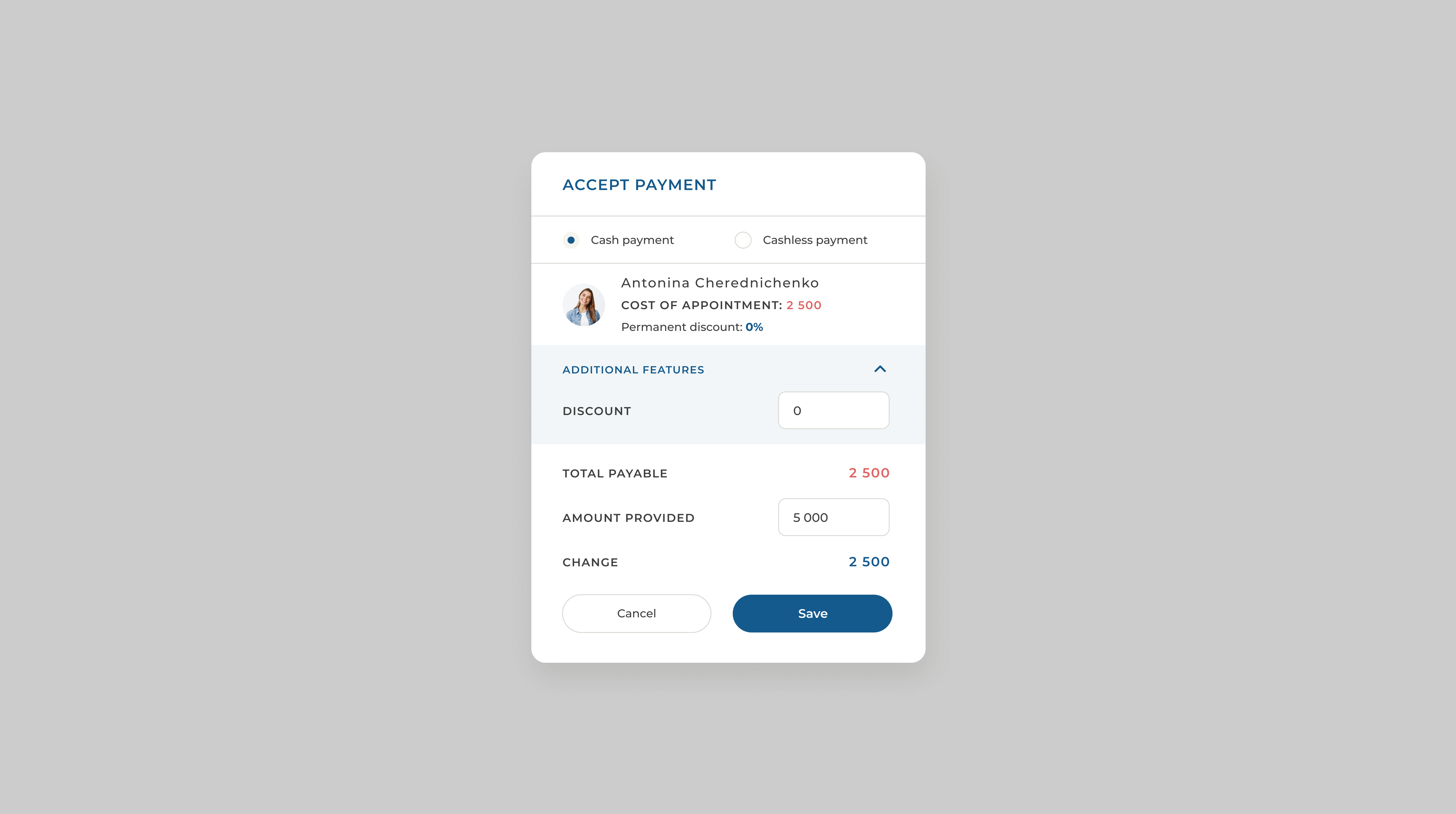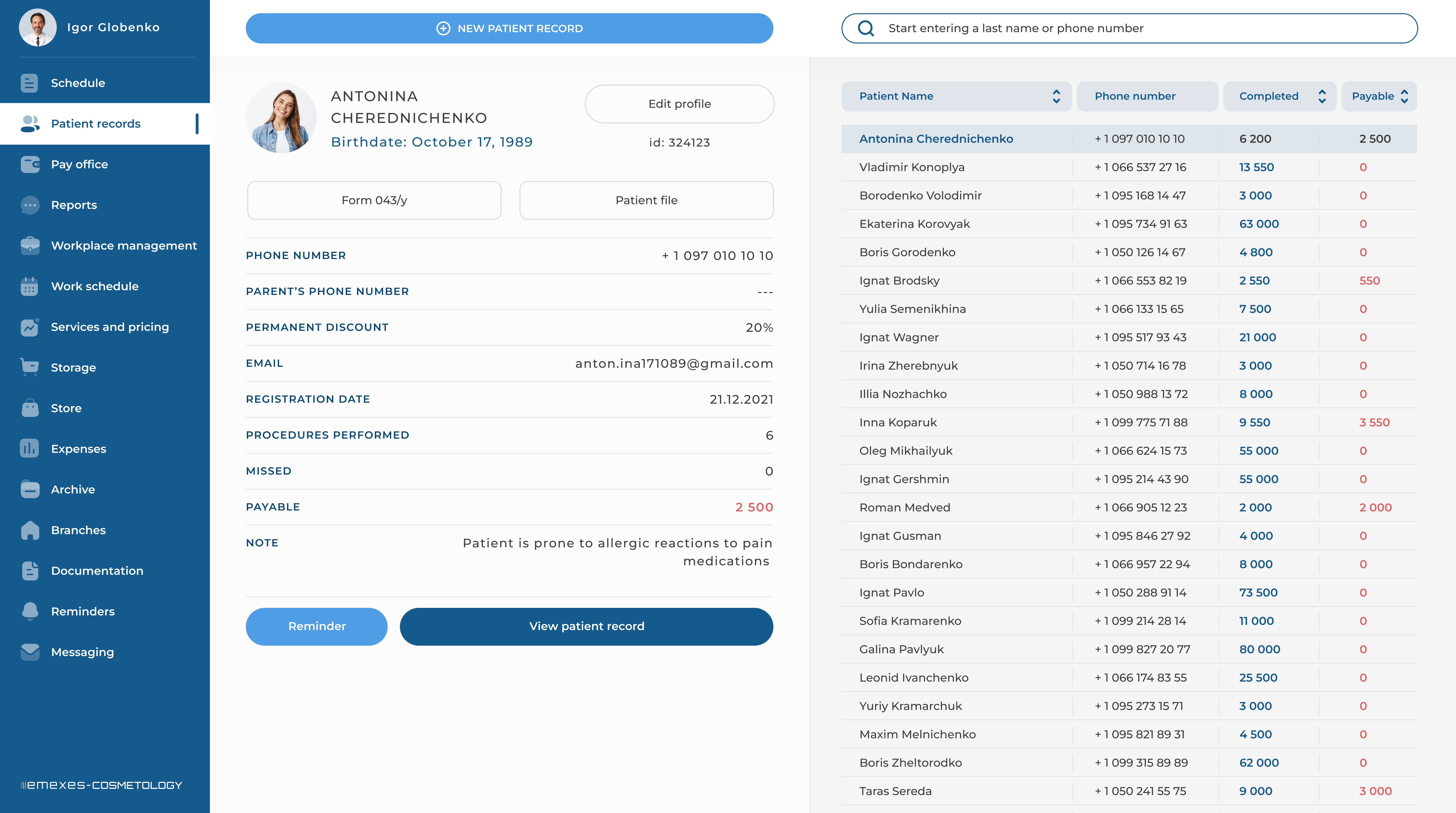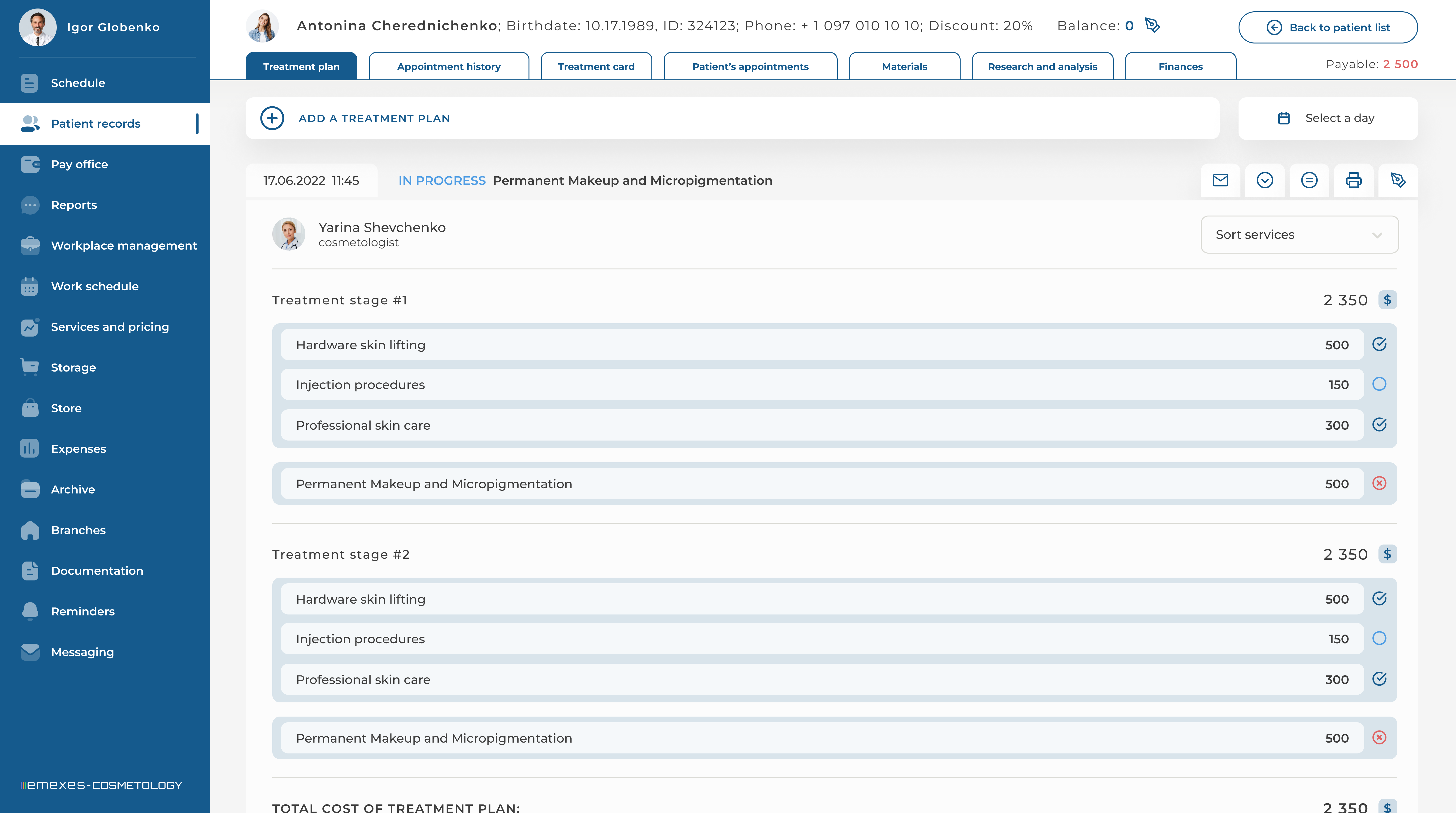 - Automation of all clinic processes: schedule, patient cards, write-off of materials and much more