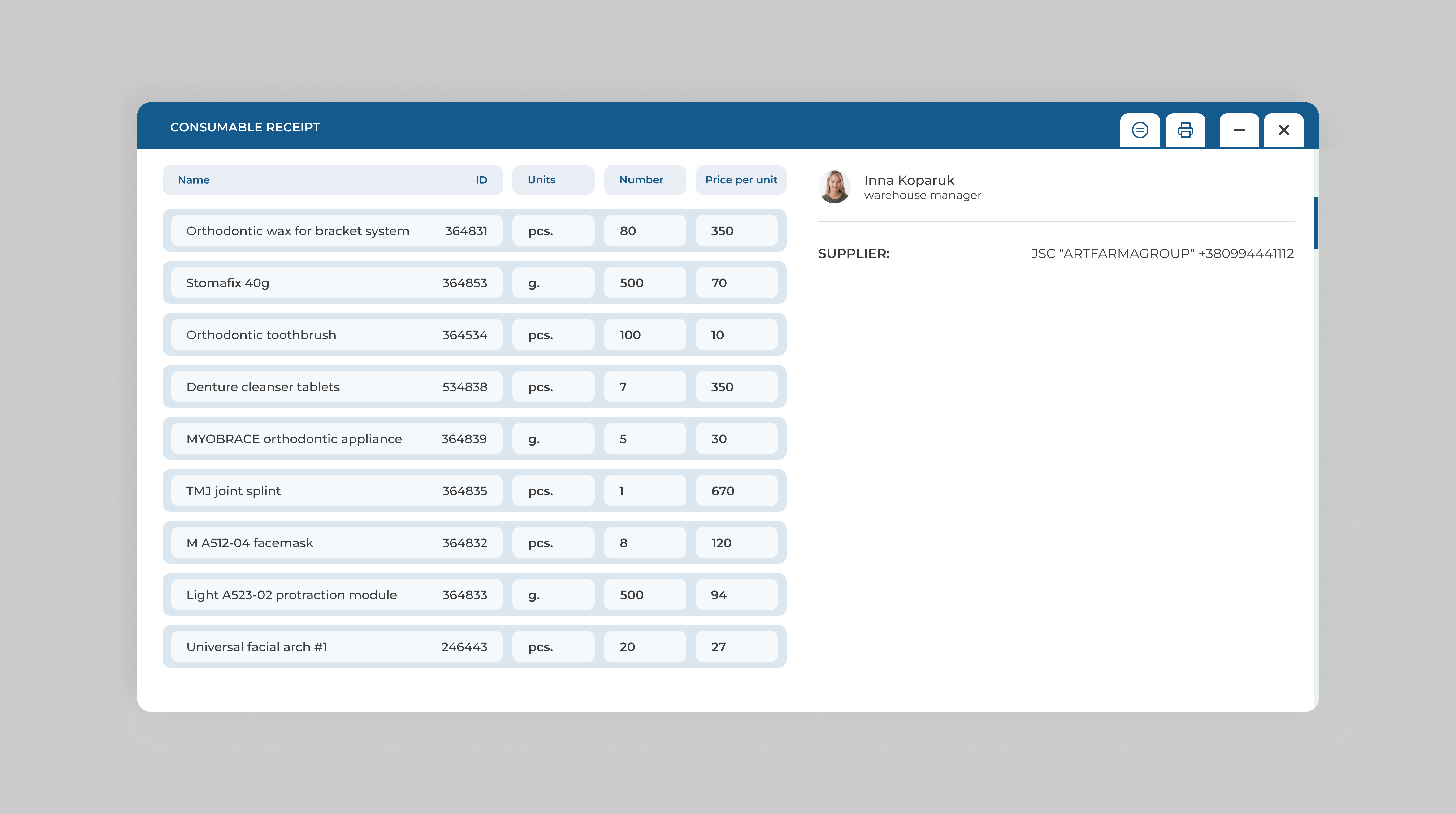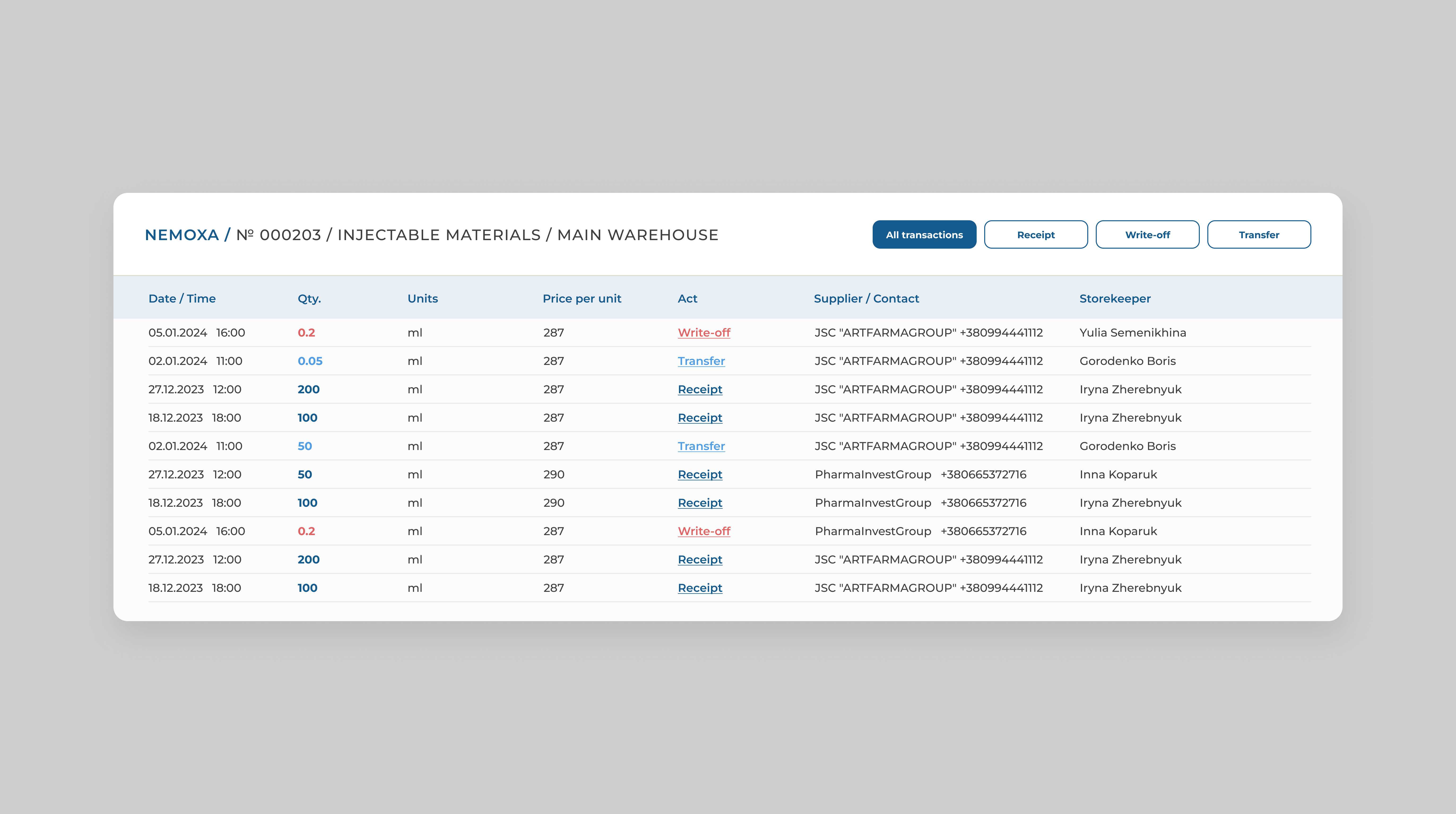 - Detailed reporting for each material in the warehouse