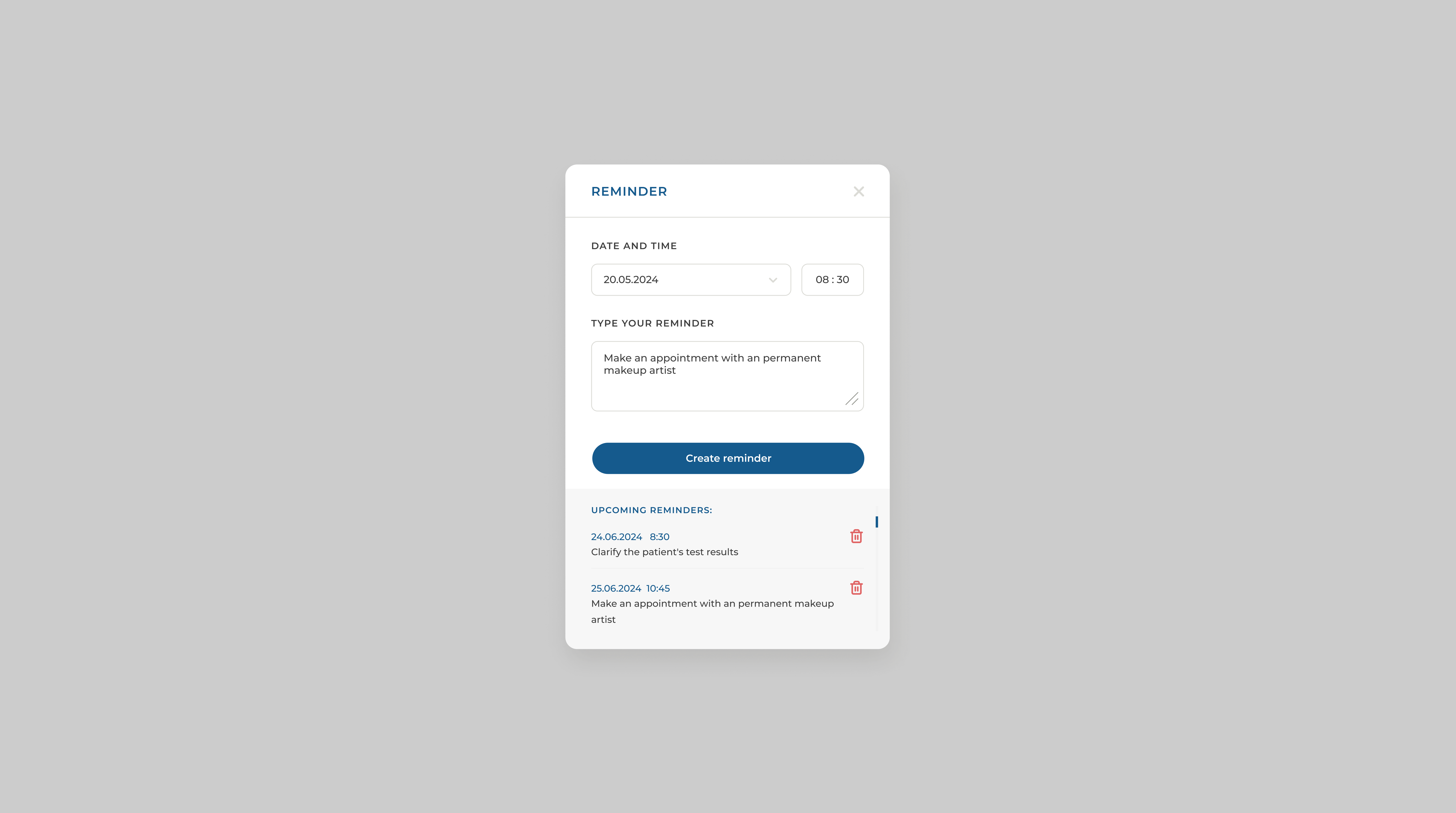 - Possibility to upload images and documents to the patient card