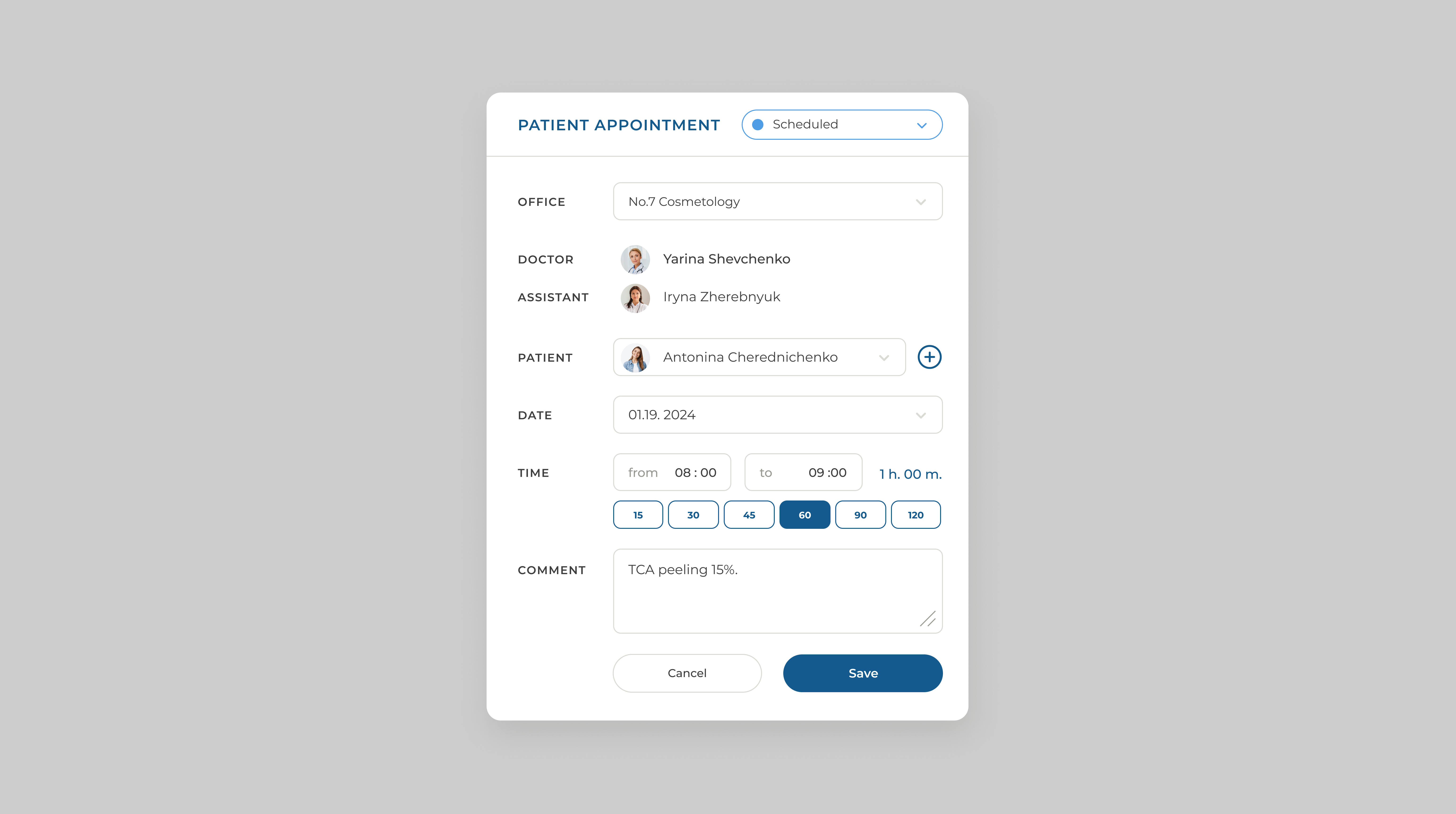 - Easy filling of patient appointment history