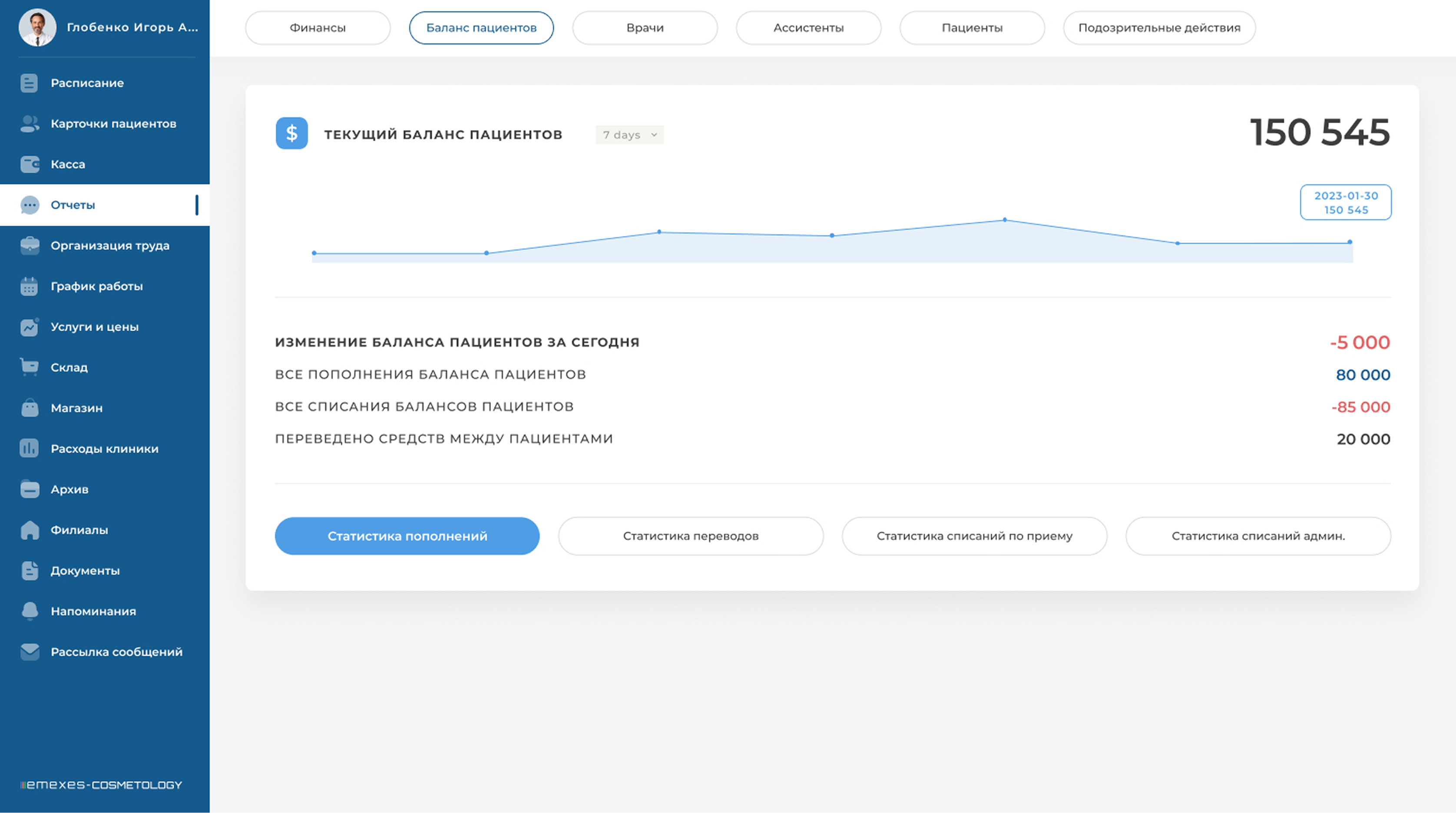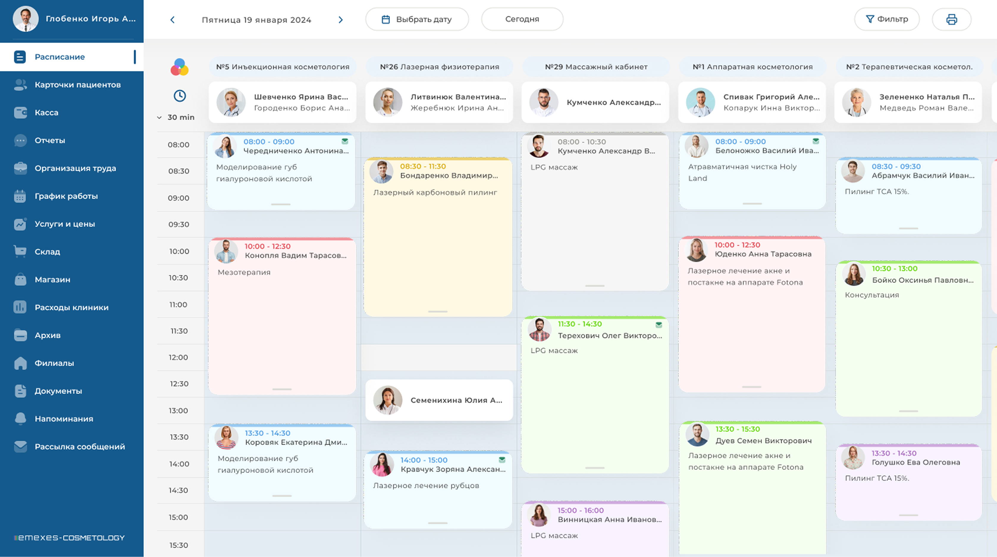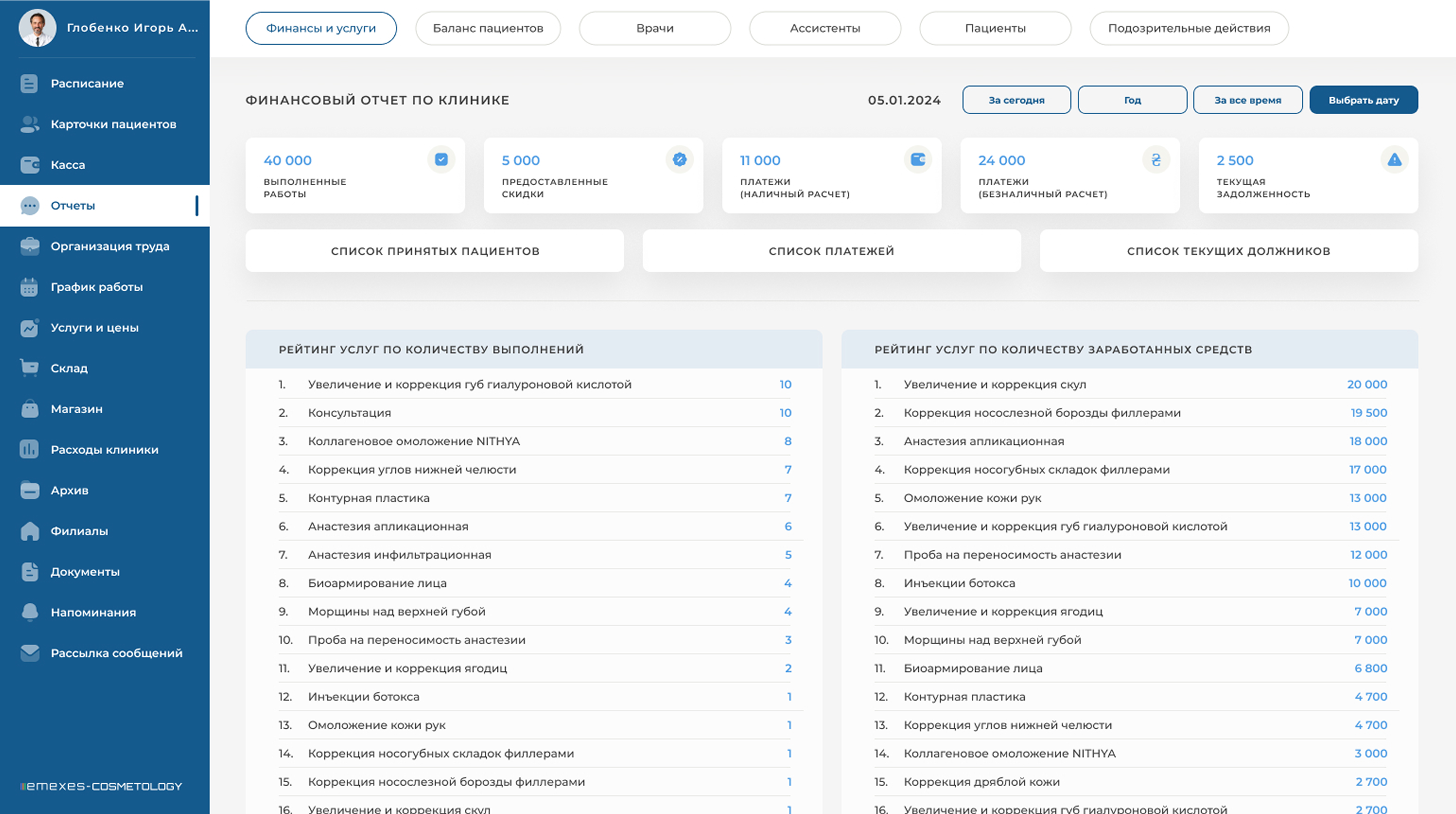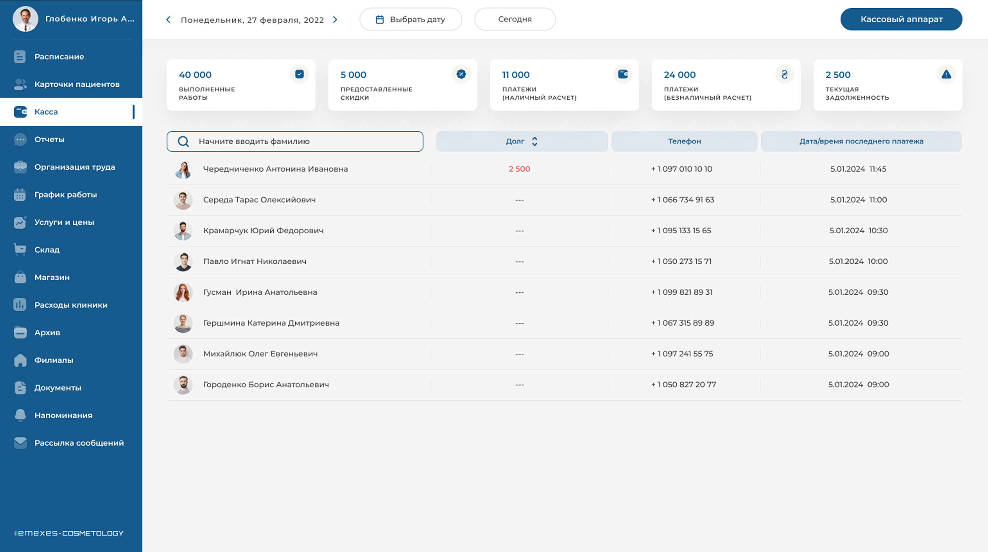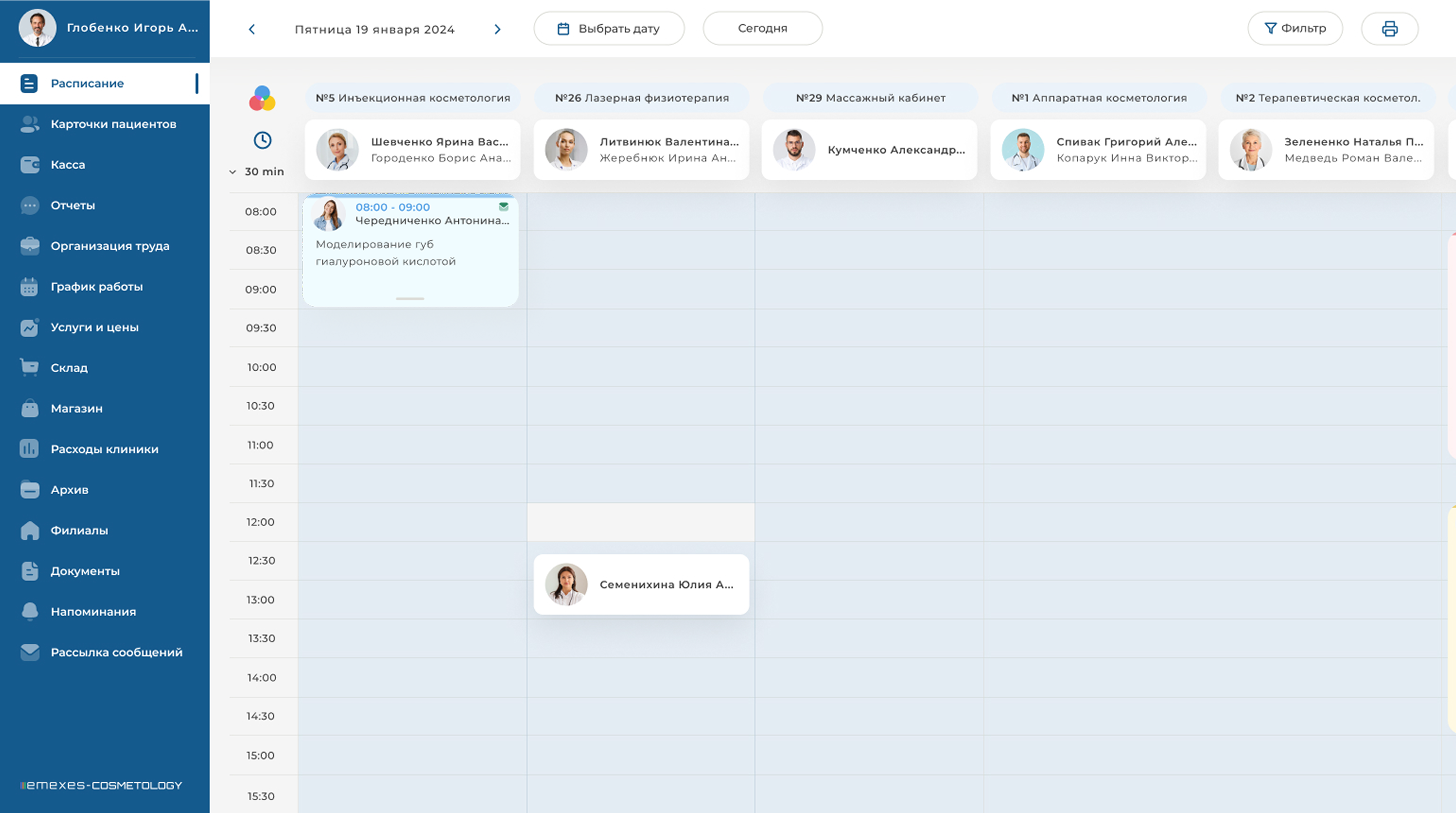 - Автоматизация всех процессов клиники: расписание, карточки пациентов, списание материалов и многое другое