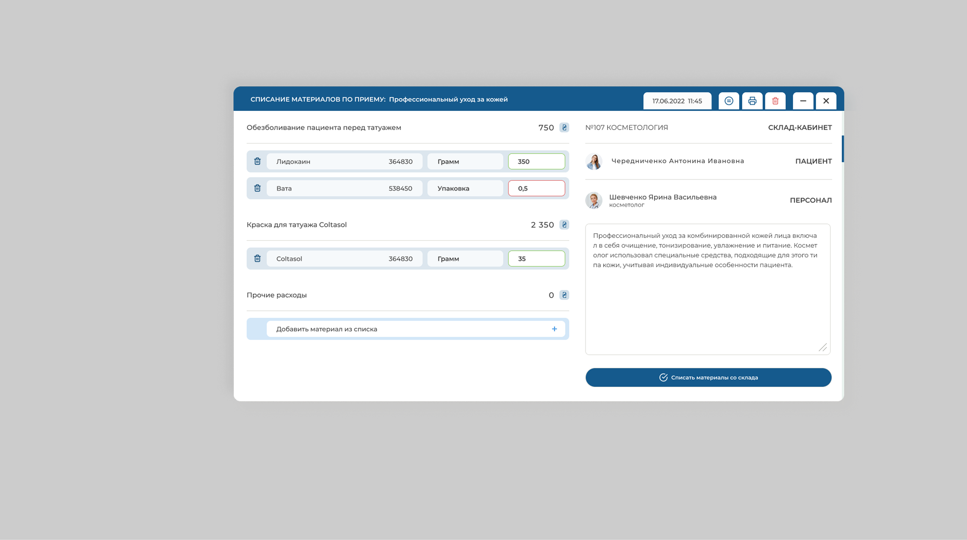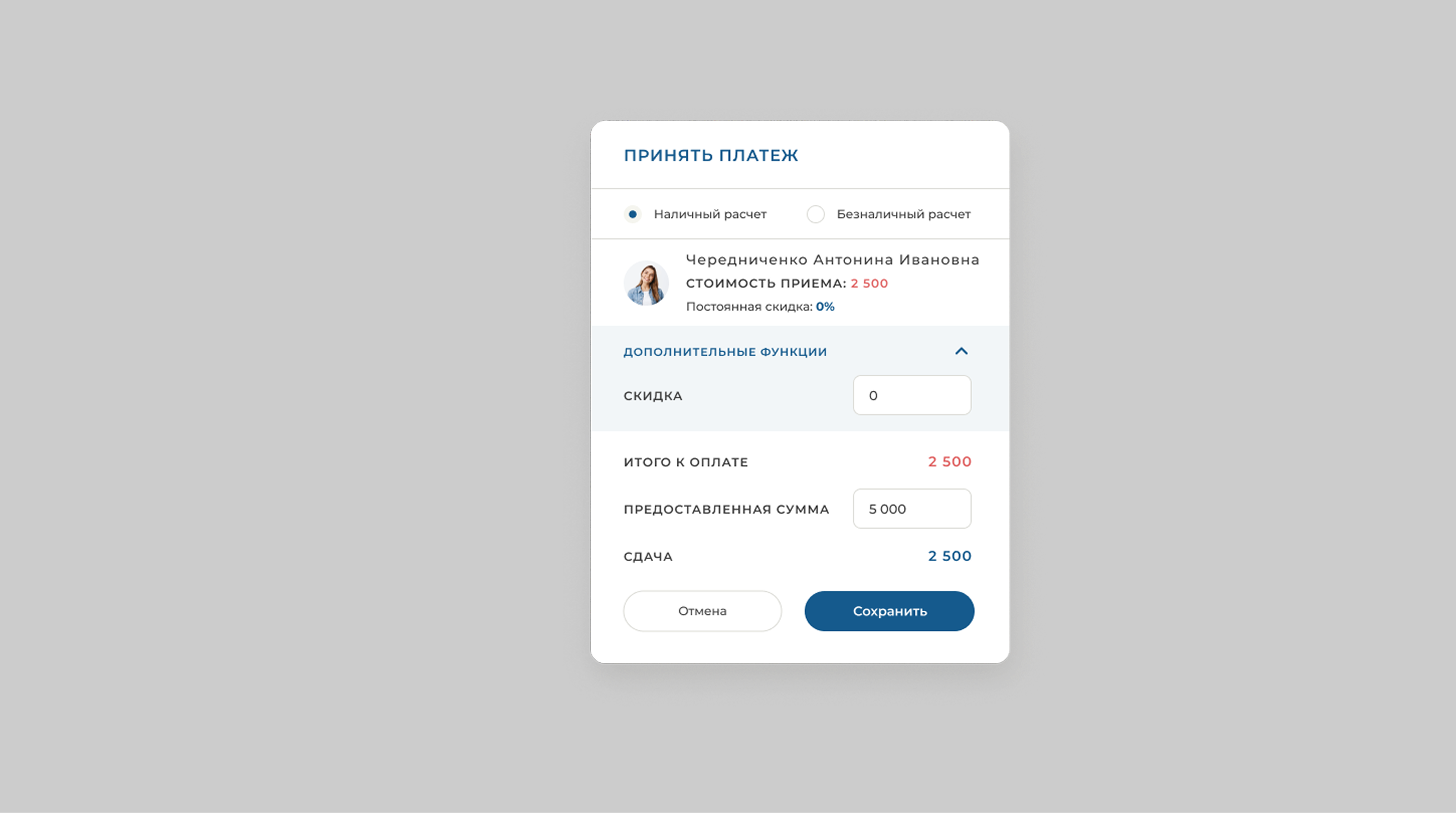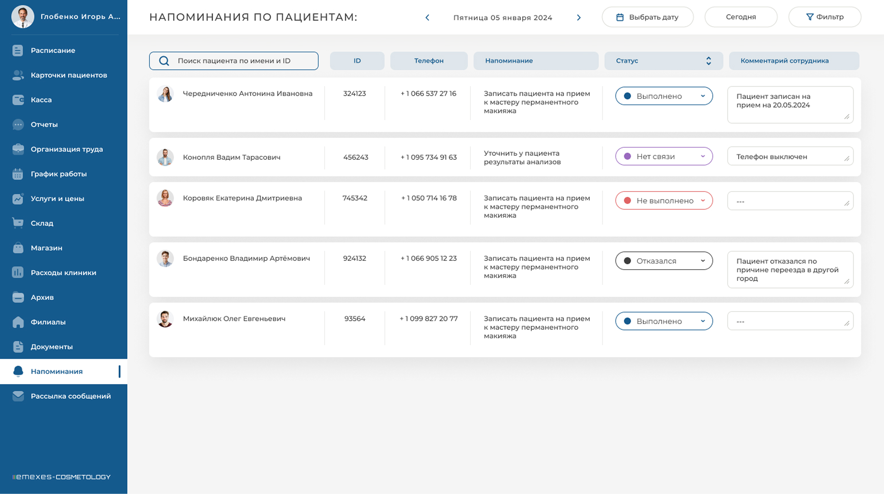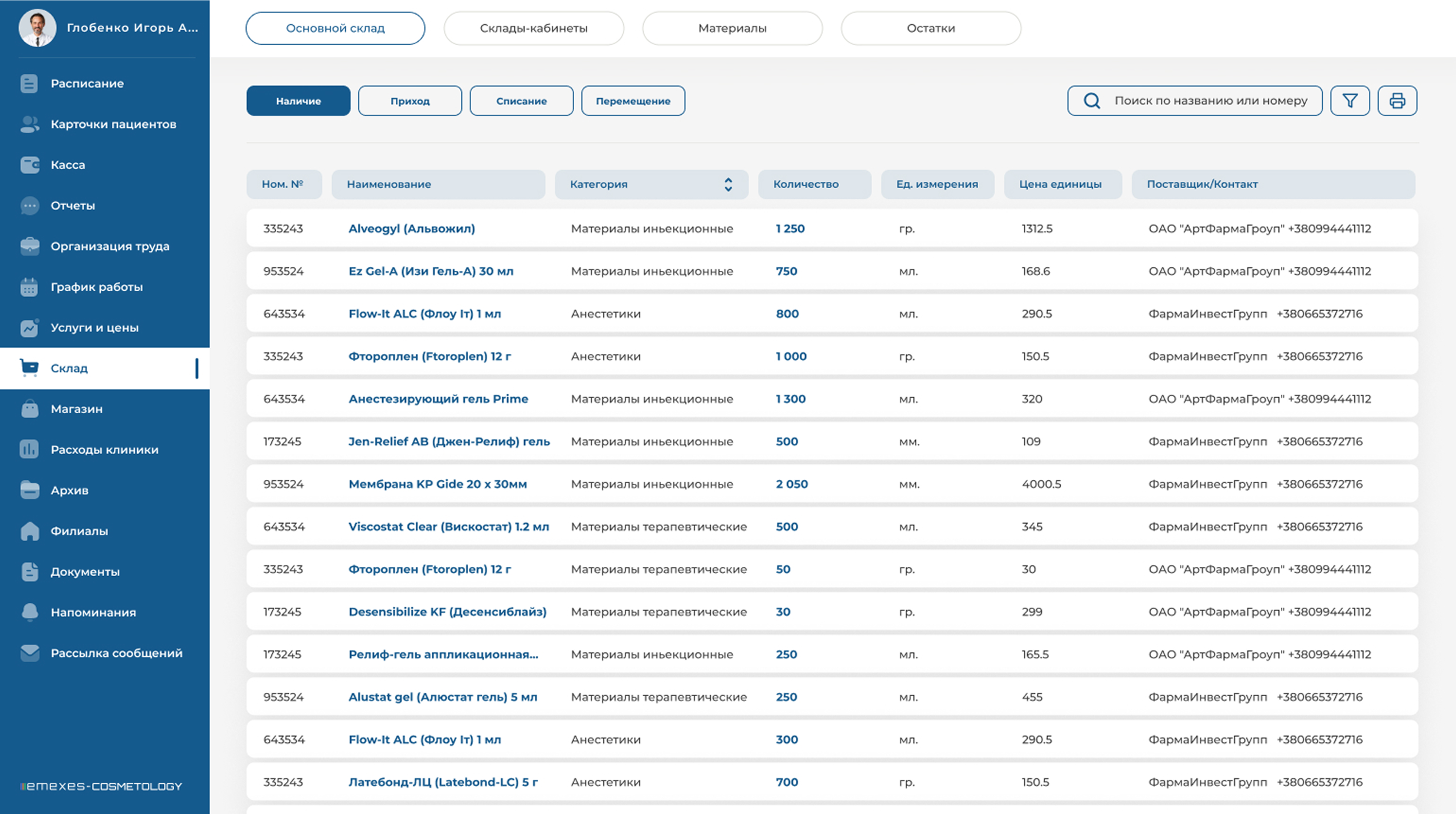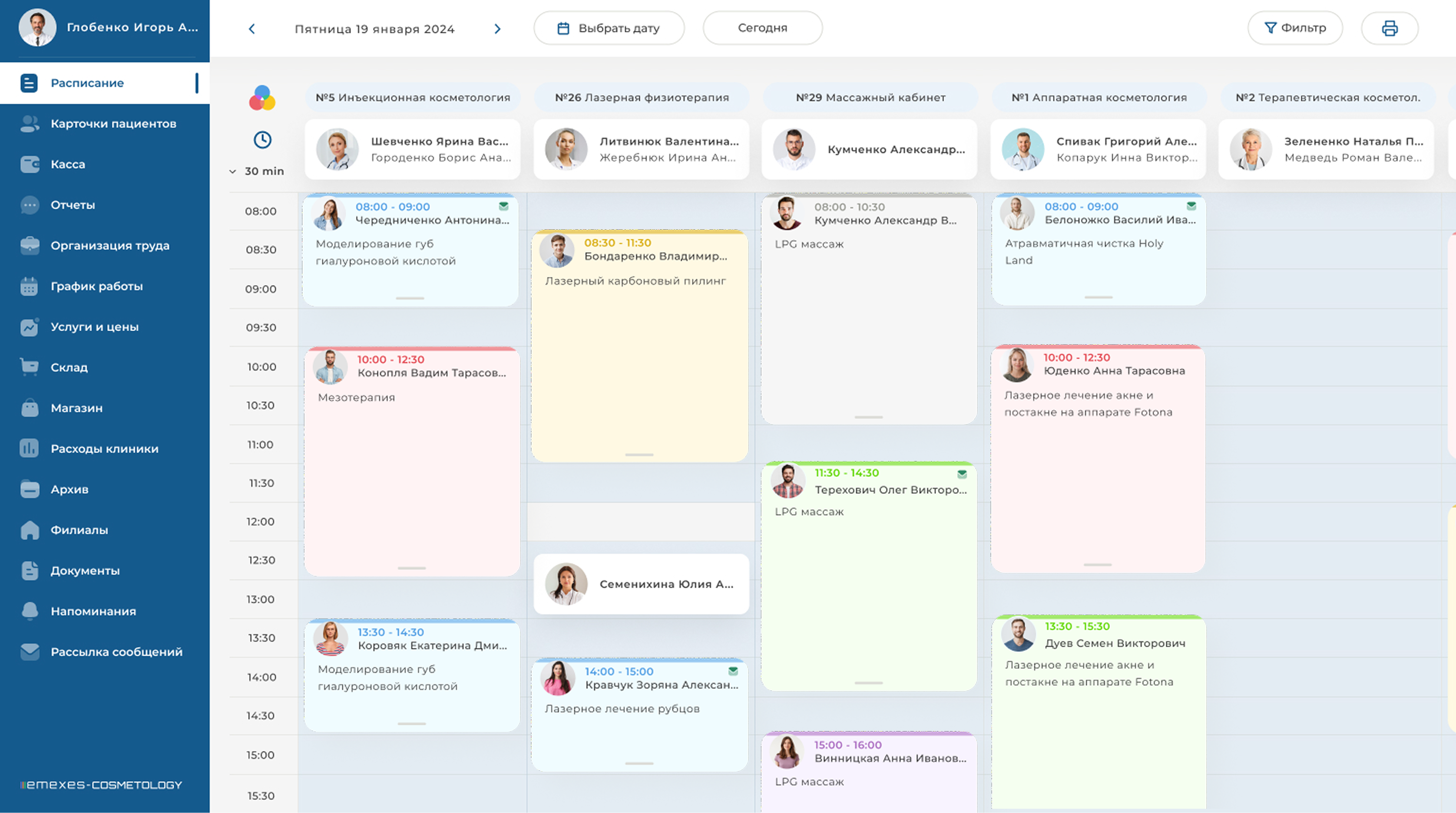 - Автоматизация всех процессов клиники: расписание, карточки пациентов, списание материалов и многое другое
