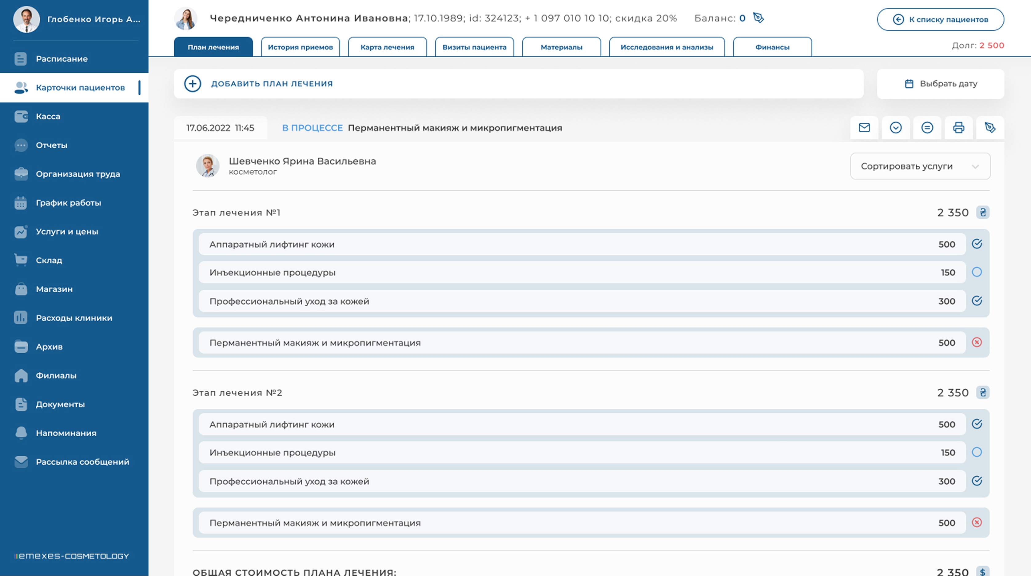 - Пример того как выглядит полностью заполненная система косметологической клиники